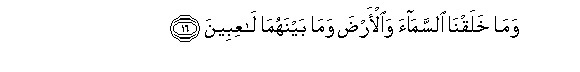 16. Wama khalaqna alssamaa waal-arda wama baynahuma laAAibeena