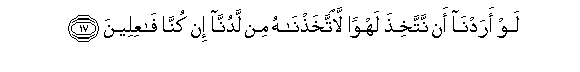 17. Law aradna an nattakhitha lahwan laittakhathnahu min ladunna in kunna faAAileena