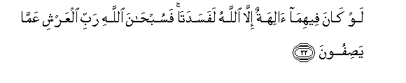 22. Law kana feehima alihatun illa Allahu lafasadata fasubhana Allahi rabbi alAAarshi AAamma yasifoona