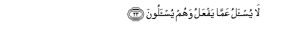 23. La yus-alu AAamma yafAAalu wahum yus-aloona