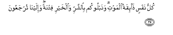 35. Kullu nafsin tha-iqatu almawti wanablookum bialshsharri waalkhayri fitnatan wa-ilayna turjaAAoona