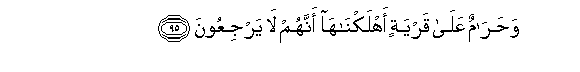 95. Waharamun AAala qaryatin ahlaknaha annahum la yarjiAAoona