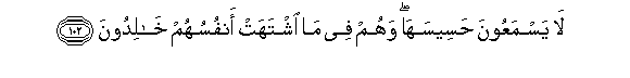 102. La yasmaAAoona haseesaha wahum fee ma ishtahat anfusuhum khalidoona