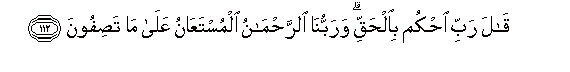 112. Qala rabbi ohkum bialhaqqi warabbuna alrrahmanu almustaAAanu AAala ma tasifoona