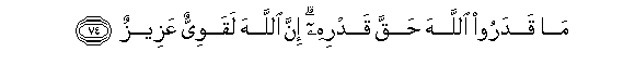 74. Ma qadaroo Allaha haqqa qadrihi inna Allaha laqawiyyun AAazeezun