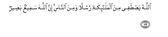 75. Allahu yastafee mina almala-ikati rusulan wamina alnnasi inna Allaha sameeAAun baseerun
