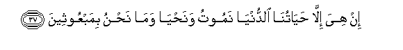 37. In hiya illa hayatuna alddunya namootu wanahya wama nahnu bimabAAootheena
