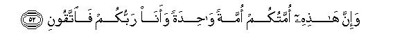 52. Wa-inna hathihi ommatukum ommatan wahidatan waana rabbukum faittaqooni