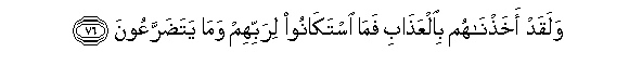 76. Walaqad akhathnahum bialAAathabi fama istakanoo lirabbihim wama yatadarraAAoona