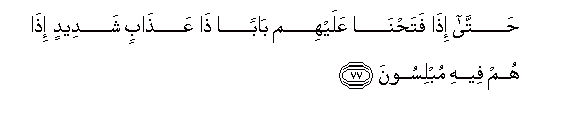 77. Hatta itha fatahna AAalayhim baban tha AAathabin shadeedin itha hum feehi mublisoona