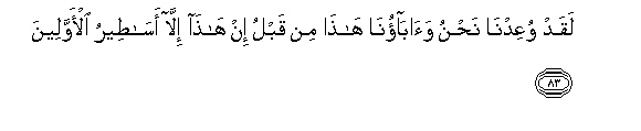 83. Laqad wuAAidna nahnu waabaona hatha min qablu in hatha illa asateeru al-awwaleena