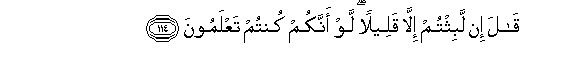 114. Qala in labithtum illa qaleelan law annakum kuntum taAAlamoona