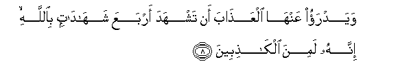 8. Wayadrao AAanha alAAathaba an tashhada arbaAAa shahadatin biAllahi innahu lamina alkathibeena