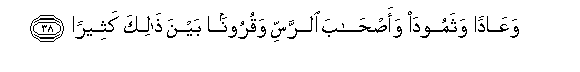 38. WaAAadan wathamooda waas-haba alrrassi waquroonan bayna thalika katheeran