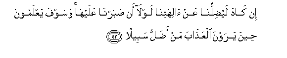 42. In kada layudilluna AAan alihatina lawla an sabarna AAalayha wasawfa yaAAlamoona heena yarawna alAAathaba man adallu sabeelan