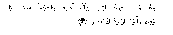 54. Wahuwa allathee khalaqa mina alma-i basharan fajaAAalahu nasaban wasihran wakana rabbuka qadeeran