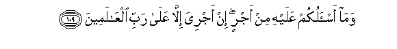 109. Wama as-alukum AAalayhi min ajrin in ajriya illa AAala rabbi alAAalameena