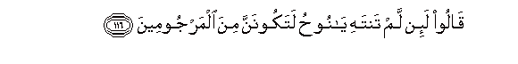 116. Qaloo la-in lam tantahi ya noohu latakoonanna mina almarjoomeena