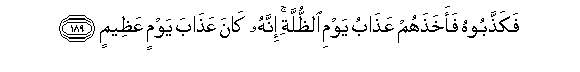 189. Fakaththaboohu faakhathahum AAathabu yawmi alththullati innahu kana AAathaba yawmin AAatheemin