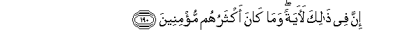 190. Inna fee thalika laayatan wama kana aktharuhum mu/mineena