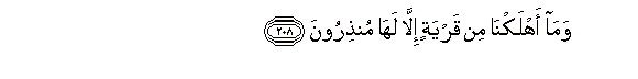 208. Wama ahlakna min qaryatin illa laha munthiroona