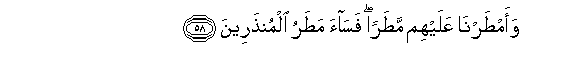 58. Waamtarna AAalayhim mataran fasaa mataru almunthareena
