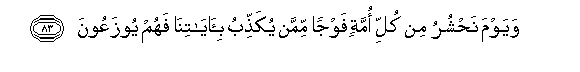 83. Wayawma nahshuru min kulli ommatin fawjan mimman yukaththibu bi-ayatina fahum yoozaAAoona
