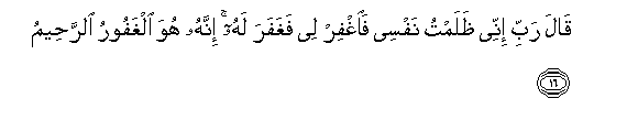 16. Qala rabbi innee thalamtu nafsee faighfir lee faghafara lahu innahu huwa alghafooru alrraheemu