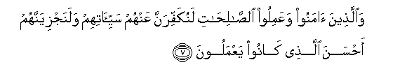 7. Waallatheena amanoo waAAamiloo alssalihati lanukaffiranna AAanhum sayyi-atihim walanajziyannahum ahsana allathee kanoo yaAAmaloona