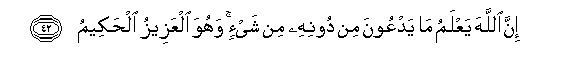 42. Inna Allaha yaAAlamu ma yadAAoona min doonihi min shay-in wahuwa alAAazeezu alhakeemu