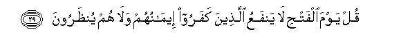 29. Qul yawma alfathi la yanfaAAu allatheena kafaroo eemanuhum wala hum yuntharoona