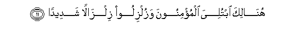 11. Hunalika ibtuliya almu-minoona wazulziloo zilzalan shadeedan
