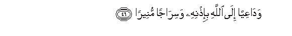 46. WadaAAiyan ila Allahi bi-ithnihi wasirajan muneeran