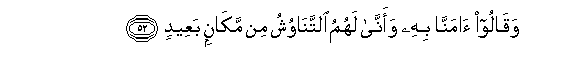 52. Waqaloo amanna bihi waanna lahumu alttanawushu min makanin baAAeedin