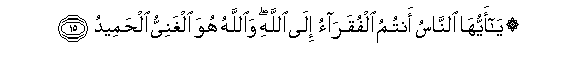 15. Ya ayyuha alnnasu antumu alfuqarao ila Allahi waAllahu huwa alghaniyyu alhameedu