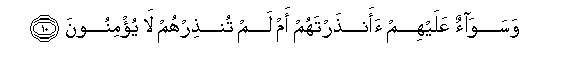10. Wasawaon AAalayhim aanthartahum am lam tunthirhum la yu/minoona
