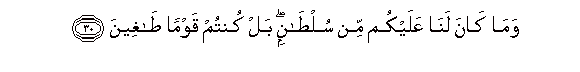 30. Wama kana lana AAalaykum min sultanin bal kuntum qawman tagheena
