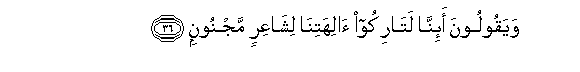 36. Wayaqooloona a-inna latarikoo alihatina lishaAAirin majnoonin