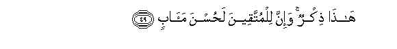 49. Hatha thikrun wa-inna lilmuttaqeena lahusna maabin