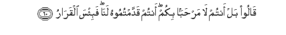 60. Qaloo bal antum la marhaban bikum antum qaddamtumoohu lana fabi/sa alqararu