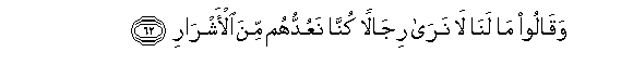62. Waqaloo ma lana la nara rijalan kunna naAAudduhum mina al-ashrari