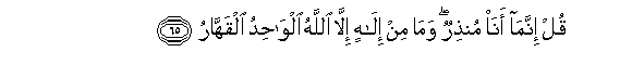 65. Qul innama ana munthirun wama min ilahin illa Allahu alwahidu alqahharu