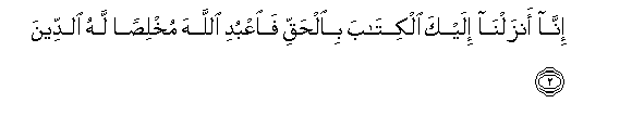 2. Inna anzalna ilayka alkitaba bialhaqqi faoAAbudi Allaha mukhlisan lahu alddeena