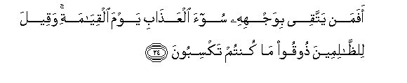 24. Afaman yattaqee biwajhihi soo-a alAAathabi yawma alqiyamati waqeela lilththalimeena thooqoo ma kuntum taksiboona