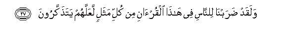 27. Walaqad darabna lilnnasi fee hatha alqur-ani min kulli mathalin laAAallahum yatathakkaroona