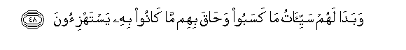 48. Wabada lahum sayyi-atu ma kasaboo wahaqa bihim ma kanoo bihi yastahzi-oona