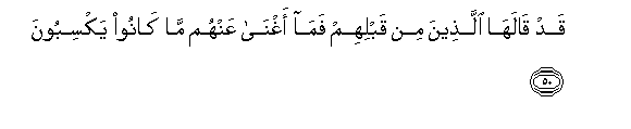 50. Qad qalaha allatheena min qablihim fama aghna AAanhum ma kanoo yaksiboona
