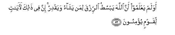 52. Awa lam yaAAlamoo anna Allaha yabsutu alrrizqa liman yashao wayaqdiru inna fee thalika laayatin liqawmin yu/minoona
