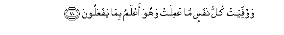 70. Wawuffiyat kullu nafsin ma AAamilat wahuwa aAAlamu bima yafAAaloona