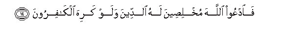 14. FaodAAoo Allaha mukhliseena lahu alddeena walaw kariha alkafiroona